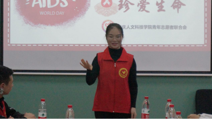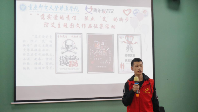 在大数据与软件学院青年志愿者协会的志愿者们的期待下数十位来自重庆人文科技学院的同学们来到了花果书院会议室,大家在简单地互相认识下便开始了今天的内容。交流会开始由重庆邮电大学移通学院大数据与软件学院青年志愿者协会综合行政部刘演军部长先用PPT展示大数据与软件学院最近的参加的青年爱不艾的活动计划以及最近获得的成就。接着来自重庆人文科技学院青年志愿者联合会注册管理认证中心部长袁婧怡同学也上台展示相关内容,大家都把所有的注意力投入在屏幕上以及两位同学精彩的描述之中。