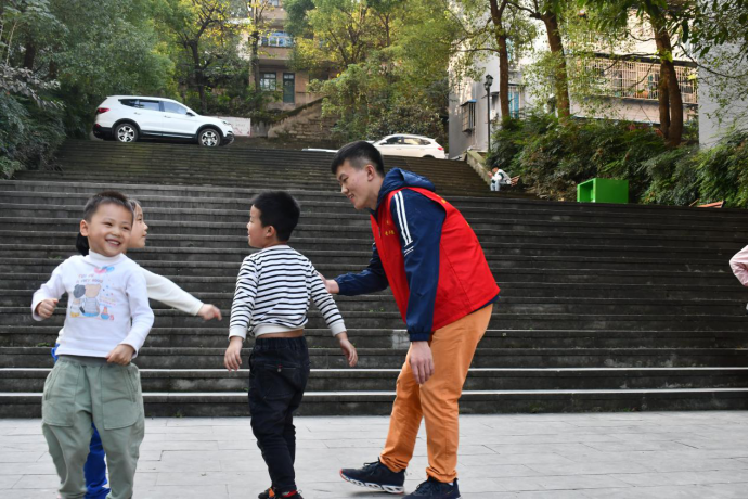 送出一份爱心,收获明媚阳光。在炽热的阳光下有这样的一群人,他们身穿红色马甲,面带微笑,怀着一颗充满爱的心。他们就是大数据与软件学院的志愿者。为了汇聚爱心,志愿者们在11月14日下午三点半来到杨柳街,用陪伴去温暖这里的小朋友。志愿者与小朋友用笑声度过一个愉快的下午。