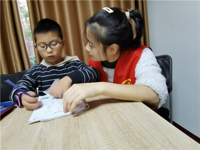 公交车呜呜前进,载着志愿者们将爱心一路送到了马赛庄园,带到了小朋友们的身边。江边刮起微风,温柔地轻抚草地。志愿者们也踏着轻柔的步伐走进课堂小心翼翼地坐在小朋友们旁边,尽可能地不去惊扰专心学习的他们。志愿者的到来让小朋友们感到高兴,他们主动向志愿者们问好,而志愿者们也热心尽力地开始辅导他们作业。小朋友们一刻不停地在纸上作答,稚嫩的脸蛋上是极专注认真的神情,偶尔遇到难题便会礼貌地向志愿者们询问,乖巧而有耐心。从小朋友们真诚的眼神中志愿者们感受到了一个个幼小心灵对不断学习以求上进的执着,他们如冬日里的暖阳一般充满希望,。课堂上,志愿者们辅导小朋友完成各科作业,当遇到无法讲解的难题便会一同商量,以免误导小朋友。一方愿讲一方愿听,志愿者与小朋友自然地融入交流中,小朋友们也陆续完成了作业。