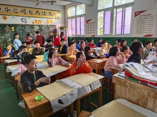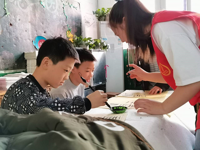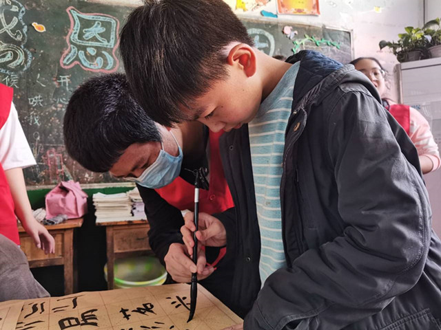 书法课结束了,志愿者们默默收拾着工具,将教室还原。小朋友们知道离别即将带来,等志愿者们准备离开的时候走过来抱住志愿者们,仰起头,用这世上最可爱的语气说着“谢谢”。