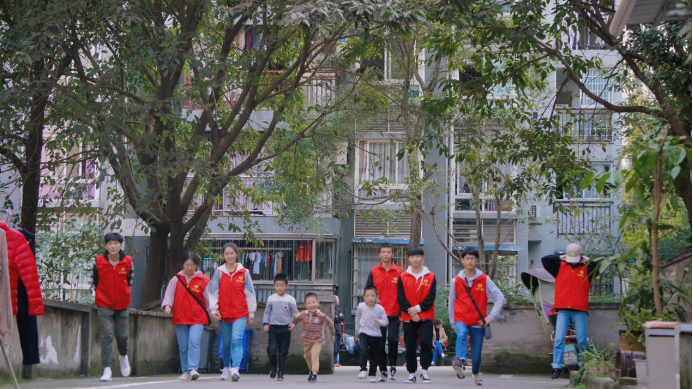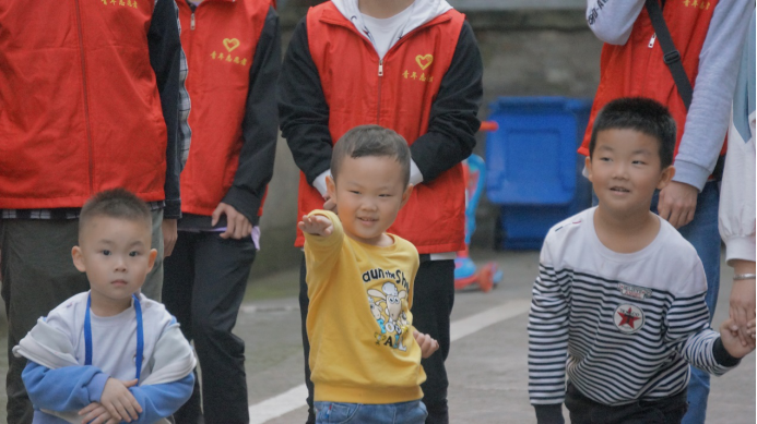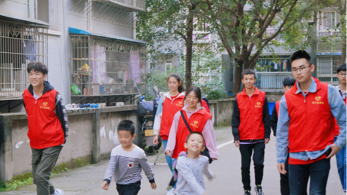 夕阳回到自己的家,在楼上的母亲也呼唤着孩子们回家吃晚饭,愉快的时间为何如此短暂,小朋友们一边慢慢地走回家一边不舍地回头向志愿者招手。嘿,下次见!