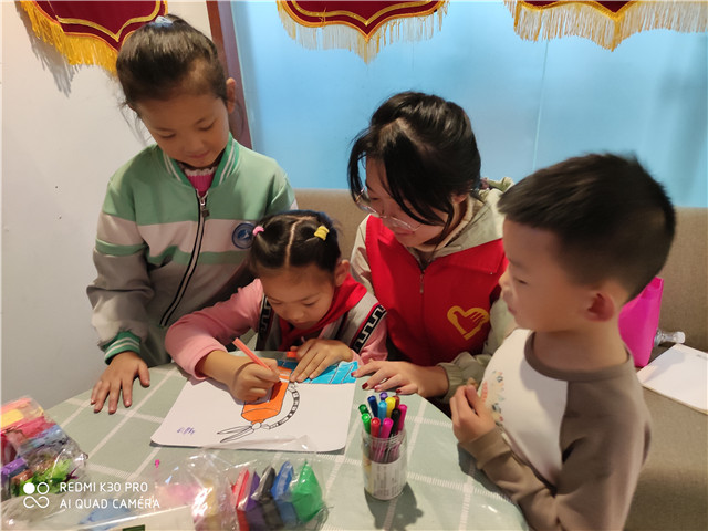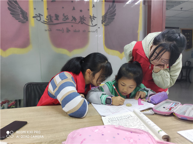 在活动开始前,各个志愿者们在学校大门口集合,并穿好了自己鲜红的志愿服,整理好着装,聆听负责人讲解活动的具体内容和规则后,一起前往马赛庄园服务地点。这是志愿者们第三次来到马赛庄园,相同的地点,相同的时间,又是相同的氛围,再遇到相同的人。每一次踏入小课堂的心情都是新鲜的,眼光移到每个小朋友身上,看到他们稚嫩的笑脸,志愿者们仿佛回到了儿时的时光。