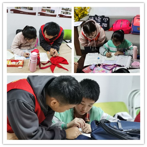 活动开始之前,志愿者与孩子们先相互认识,熟悉之后,志愿者开始辅导孩子们的作业。在辅导过程中,孩子们积极地向志愿者请教自己在学习以及生活中遇到的问题,志愿者亦耐心地为孩子们提供解决方案。在辅导作业中,志愿者认真观察孩子们的握笔姿势以及坐姿,并一一纠正孩子们的姿势错误,帮助他们掌握了正确的坐姿和握笔姿势。孩子们做完作业后,志愿者仔细检查孩子们的作业并指出他们的错误,孩子们认真聆听,并及时进行改正。经过2个多小时的作业辅导,孩子们都高效地完成了课后作业。充分展示出志愿者对孩子们的爱以及孩子们对志愿者的热情。