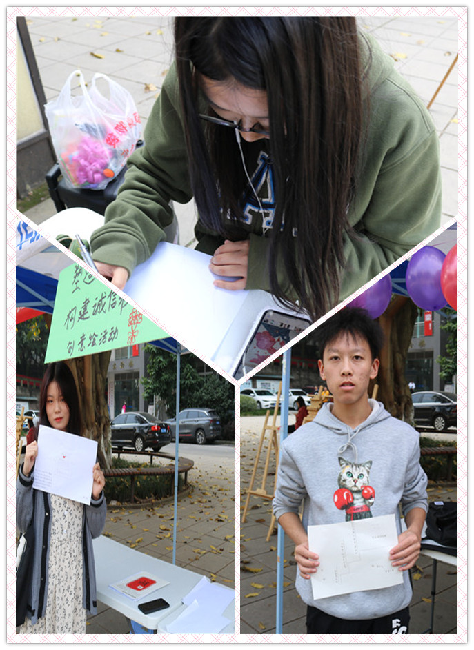 本次活动旨在让更多的同学明确诚信的内涵和本质,树立诚信意识,自觉做一个诚信的好学生,并且培养他们的动手能力,提升自身的设计理念,丰富课余生活。