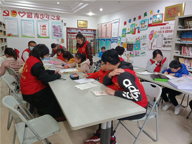 当很多小朋友们都把作业完成了,志愿者们也不忘去丰富他们的课外生活,去挖掘他们的个性特点。一部分志愿者引领着护着年级较小的小朋友在宽阔的走廊上玩跳房子,嬉戏声在走廊回荡。你只要仔细观察,志愿者们的脸上也浮现出发自内心的笑容,这大概就是志愿者们发自内心的有一颗为他人服务的心的体现吧。
