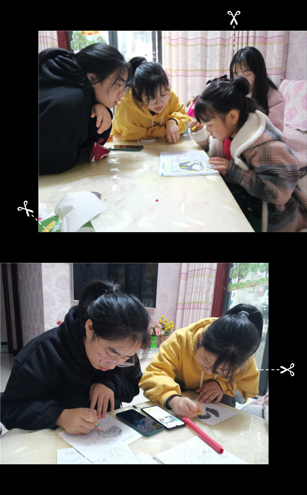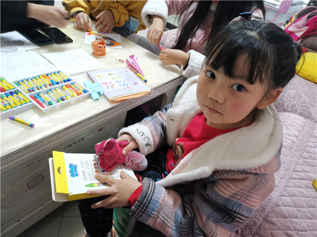 对橡皮泥进行“改造”后,歆艺又拿出了一叠折纸,志愿者们便坐在歆艺的旁边,准备看歆艺一展身手。她先在纸上画上了眼睛和鼻子,一张纸反复在指尖折叠,最后变成了一个活灵活现的皮卡丘。志愿者们都自愧不如,夸奖并鼓励着歆艺。不知不觉中,歆艺又拿出了她的涂色卡纸与蜡笔,在志愿者与歆艺小朋友的共同努力下,一张张黑白卡纸变成了一幅幅美丽的画卷,歆艺在上面书写着对未来美好的愿望。在卡纸上,歆艺贴心地为志愿者们的作品打分,也写上了志愿者们的名字,足以看出歆艺是一个对生活充满了信心与乐观的孩子,并没有因为自身缺陷而闷闷不乐。