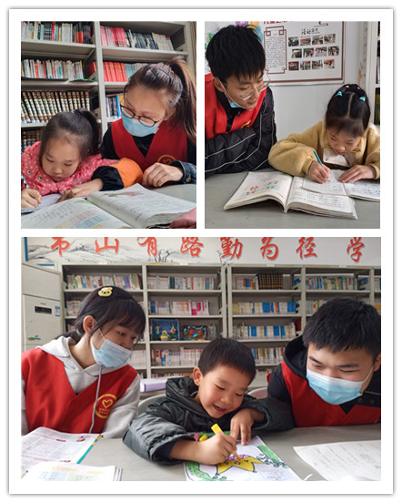 相比刚开始来的时候,志愿者和孩子们之间的友谊越来越坚固,关系越来越亲近,默契越来越足。课堂和谐温馨的气氛让志愿者和孩子们都深陷其中。在志愿者辅导小朋友学习期间,有的志愿者用有趣的方式讲解,有的则是查漏补缺式,让小朋友们在自己做作业和学习的同时更好的知道了自己的长处和不足,一次次耐心的辅导,一次次愉悦的交流,一点点的拉近了志愿者与小朋友们之间的距离,图书室里回荡着孩子们的欢笑声和读书声。在小朋友们眼中,志愿者们不再像老师般严肃的存在,而俨然成为了他们身边的一位位伙伴。每一个孩子都是那么纯真,美好,志愿者的陪伴使孩子们的假期生活更加充实,快乐,让孩子们的周末更加有意义,更加充满色彩。