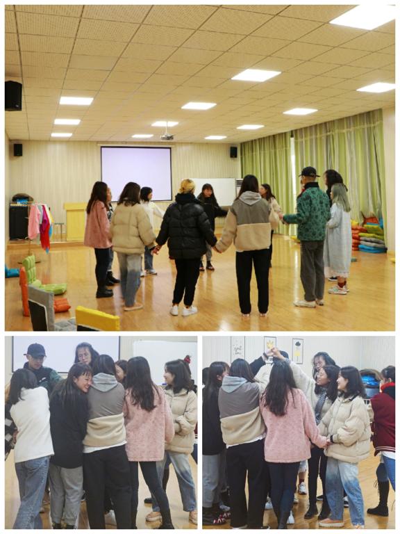 最后一个环节是心理剧,有主角、配角观众3个身份,有3位同学自愿当主角,他们分别讲述了各自的烦恼——如何减轻自己的不安全感,去建立亲密长久的关系,如何安慰朋友的同时不让自己陷入抑郁……通过同学们的选择,最后呈现如何建立亲密长久的关系这一主题。通过情景再现将影响主角最大的一个成长事件鲜活地呈现出来,通过空椅子技术、社会支持等方法,让主角解开内心深处的结,也让其他人通过这个心理剧,找到自己成长中的问题,从而实现自我疗愈。在这个环节,所有人都打开了心扉,给予对方安慰鼓励,让每个人有勇气去直面深埋心底的烦恼。