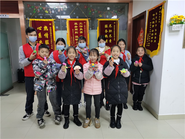 在小课堂里总是不乏有趣的事情。有的时候志愿者们也是童心未泯的“小朋友”,他们在作业辅导结束后用搞怪的腔调逗乐着可爱的小朋友,调侃小朋友们叫“叔叔”;与小朋友们一起到运动场做游戏;陪小朋友们捏橡皮泥,五颜六色的橡皮泥在小朋友的手里逐渐生动起来······活动室的小红花榜的活动也持续进行中,孩子们的表现也变得越来越好,一切都显得顺意。相逢总是会离别带着不舍,但志愿者们知道,离别是为了下一次更好的相遇——他们用橡皮玩偶约定了下一次的相遇。这便是志愿服务精神中提倡的志愿者欣赏他人、与人为善、有爱无碍——友爱精神。