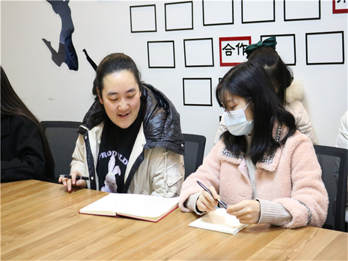 当双方的宣传部长聊得热火朝天时,一旁的通工项目部部长和淬炼社会实践部部长因为一个发现惊讶得站了起来。双方分享了本学期的活动开展情况后,发现无论是淬炼的节约粮食行动、“诚信创意绘大赛”,还是通工的垃圾分类行动以及“益守汉字校园行”活动,都由基础志愿服务提升到了精神修养方面,这也表明了两院目标的一致性,以及双方都打破了志愿服务项目开展的僵局,朝着新的大道前进。在惊喜之余就下学年的活动做了初步的交流,都表示要抓住机会和对方合办一场活动,加强两院的交流与联系,增进两院的友谊。