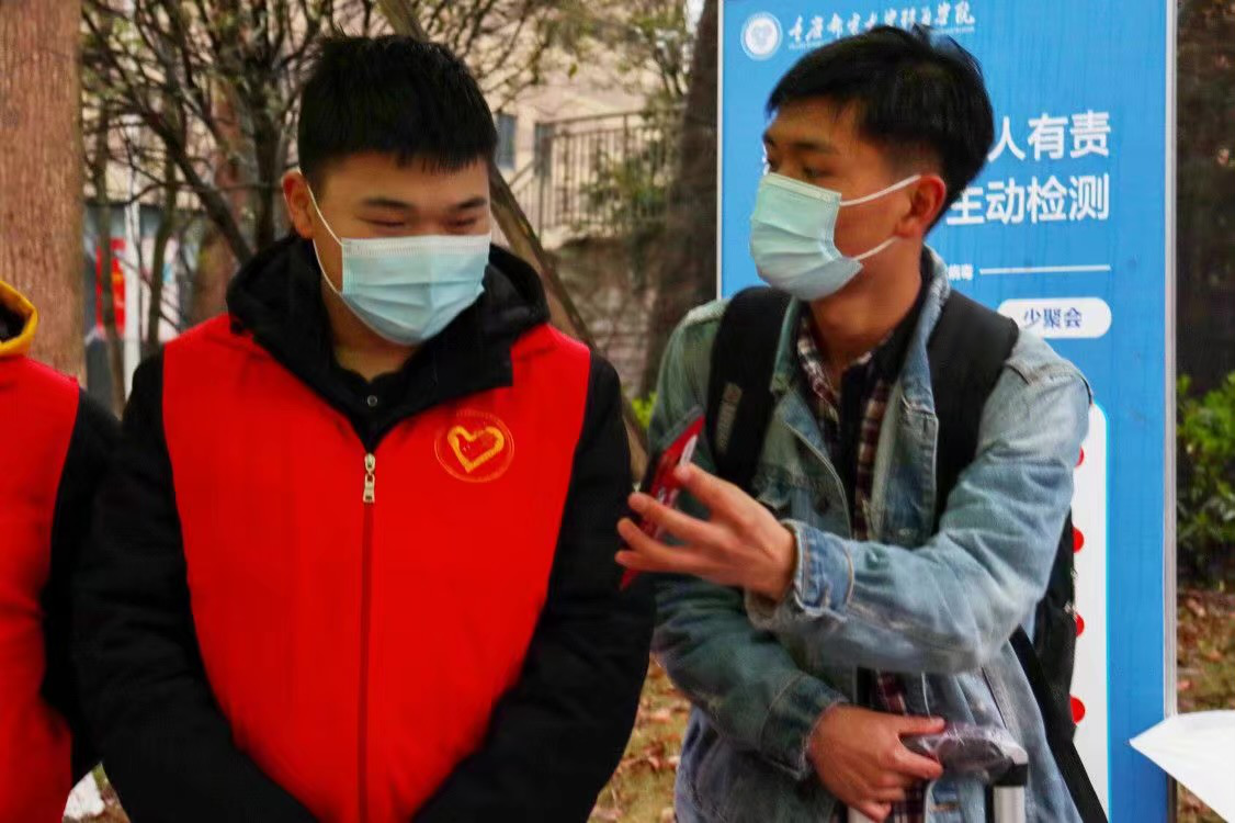 为帮助移通学院师生安全返校,保证全校师生的生命健康安全,校团委整合校青联以九大学院青协志愿力量,于2月27、28日在学校南北校区校门展开了返校疫情防控志愿服务活动。志愿者们身穿红马甲,配合学校保卫对返校师生进行学生证、健康码的核验,并指引师生有序进入校园。