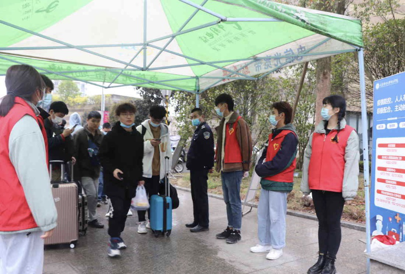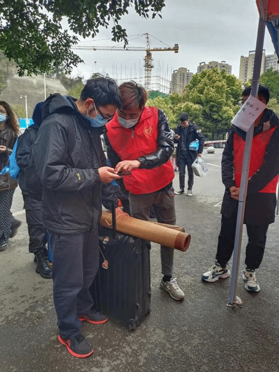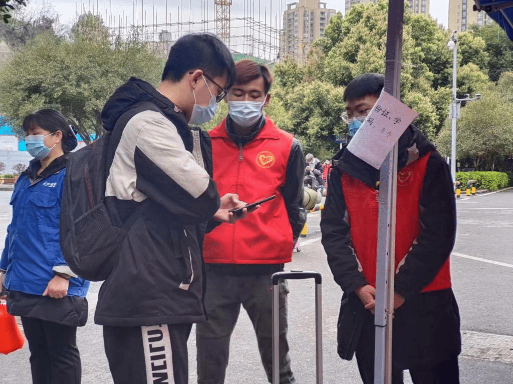在为期两天的返校执勤和劝导服务中,志愿者们一丝不苟、分工合作,营造出一道温暖且靓丽的风景线。核验健康码和身份信息、测量体温、消毒行李、宣传防疫知识,志愿者们以最真挚温暖的笑容和最严谨认真的态度,让返校的同学们忘却了奔波的疲惫,感受到无限的温暖。
