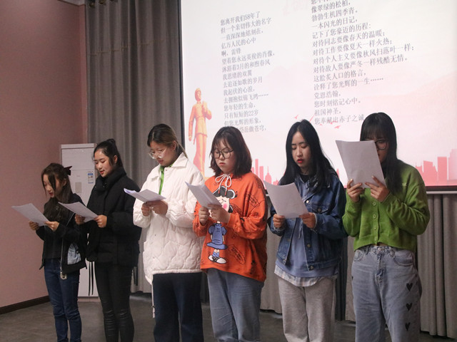“您离开我们五十八年了,但一个亲切伟大的名字一直深深刻在亿万人民心中。”朗诵诗词开启了今天活动的第一站,在柔和的背景音乐下,志愿者们的声音将属于雷锋同志的诗歌沉稳道出。“您光辉的形象,像巍峨岱岳傲苍穹,您不朽的精神,像翠绿的松柏,勃勃生机四季春。”声线明朗、气势浩荡,激荡的诗歌激励着在场的每一位志愿者!诗朗诵的直观情感表达,不仅展现出志愿者们对雷锋同志最真实的赞颂,更让在座志愿者们志气激昂!