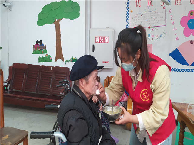 每一次的志愿时间只有两小时,这两个小时里,志愿者们和老人们彼此就是最亲近的人,像对待自己家人一样,和和睦睦。但总要有分别的时刻,志愿者们虽然离开了,但快乐会一直在那陪伴着爷爷奶奶们。因为,志愿精神无处不在。