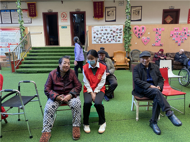 好的东西总是和坏的事物联系在一起,幸福的边缘往往会有悲伤。老人给志愿者们诉说着他们的后代成功的事业学业,但在他们脸上看到的不仅仅是对后代的骄傲感,还有深深的忧愁与孤独落寞。听老人们说由于年纪太大,院长已经不让他们独自外出了,每天都是生活在敬老院中,吃饭、睡觉、偶尔活动活动,后人们每天都忙着上班学习,一年都见不着几次,每天都是在思念中度过。志愿者们一边轻声安慰着,一边在心里也想到了自己的父亲母亲,想着活动结束后也要给自己父母打一通电话,也暗暗下决心以后要积极参与这项志愿活动,多过来陪陪这些老人。