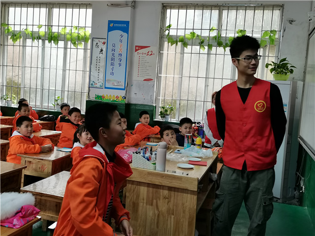依照提前安排好的小组,志愿者们在老师的带领下分别进入了自己所被分配的班级教室。随着上课铃声的响起,新学期第一次志愿服务活动便正式开始了。课堂上,志愿者为小朋友们讲解了此次开班课程的活动流程,并通过趣味提问的方式来促进小朋友与志愿者们之间的交流互动,在提出一个个问题时,总能听到小朋友们积极主动的回答声,志愿者们在他们的笑容中能清晰的感受到属于他们的那份童真和可爱,他们因志愿者的到来而开心。