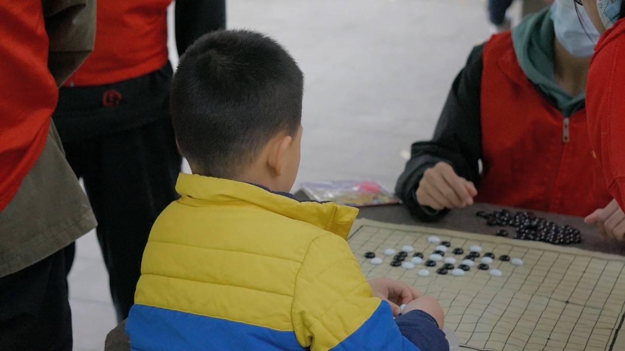 当然,孩子聪明脑袋里总有着各种奇思妙想,他们带来五子棋向志愿者们挑战,在一颗颗棋子落下的瞬间都是孩子们自信的决定。下棋不仅仅培养着孩子们的逻辑思维能力以及对长远计划的眼光,更有利于孩子们在未来的学习中获得一定的优势,同时希望这些孩子们未来在国家的建设当中散发自己独特且强大的光芒!