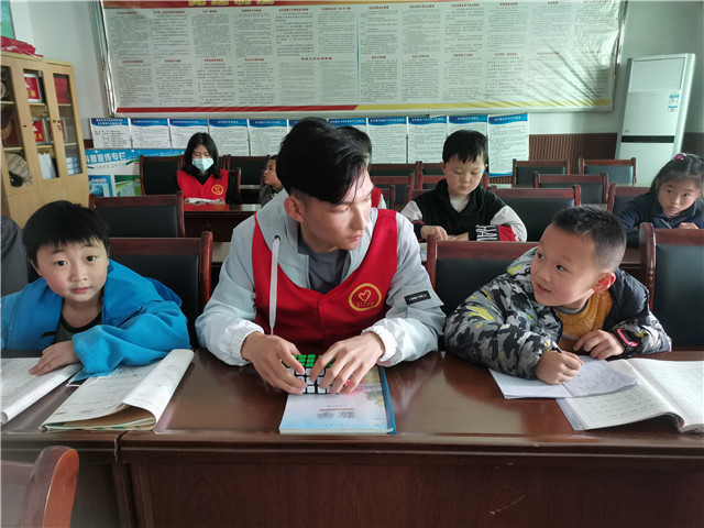 小朋友的世界里除开学习,最大的便是玩乐了。在小朋友们都完成作业之后,志愿者带着小朋友们一起做起了游戏。一起玩魔方,折纸,画画,玩飞行棋,整个活动室都充满了童真的欢笑。其中魔方最受小朋友们欢迎,但要还原魔方是一件很困难的事情,即使有着大朋友们的教学,对于小朋友们来说,也还是很困难的。所以小朋友们打乱魔方,再让志愿者们帮忙还原,看着志愿者们快速变换的手,不断旋转的魔方,成了小朋友们最大的乐趣。