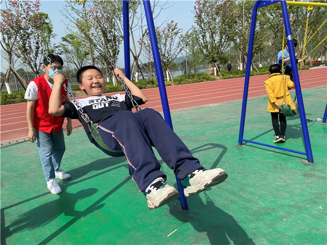 而另一边,几个小朋友在志愿者们的带领下来到了图书室。志愿者们在这里教小朋友们折起了纸飞机。其中有几个小朋友更是心灵手巧,各种复杂的纸飞机都被他们折了出来。折完纸飞机,志愿者们带着小朋友,小朋友带着纸飞机来到了空地上面,开始了他们的纸飞机比赛,比比谁的纸飞机飞的更远,飞着的纸飞机承载着孩子们和志愿者们的欢声笑语,乘着阳光,一切都是那么的和谐。剩下的几个小朋友带着志愿者们在公园里玩起了游乐设施,志愿者和小朋友们一起玩起了秋千,一起体验着童年的快乐,分享着孩子们的童趣和天真!