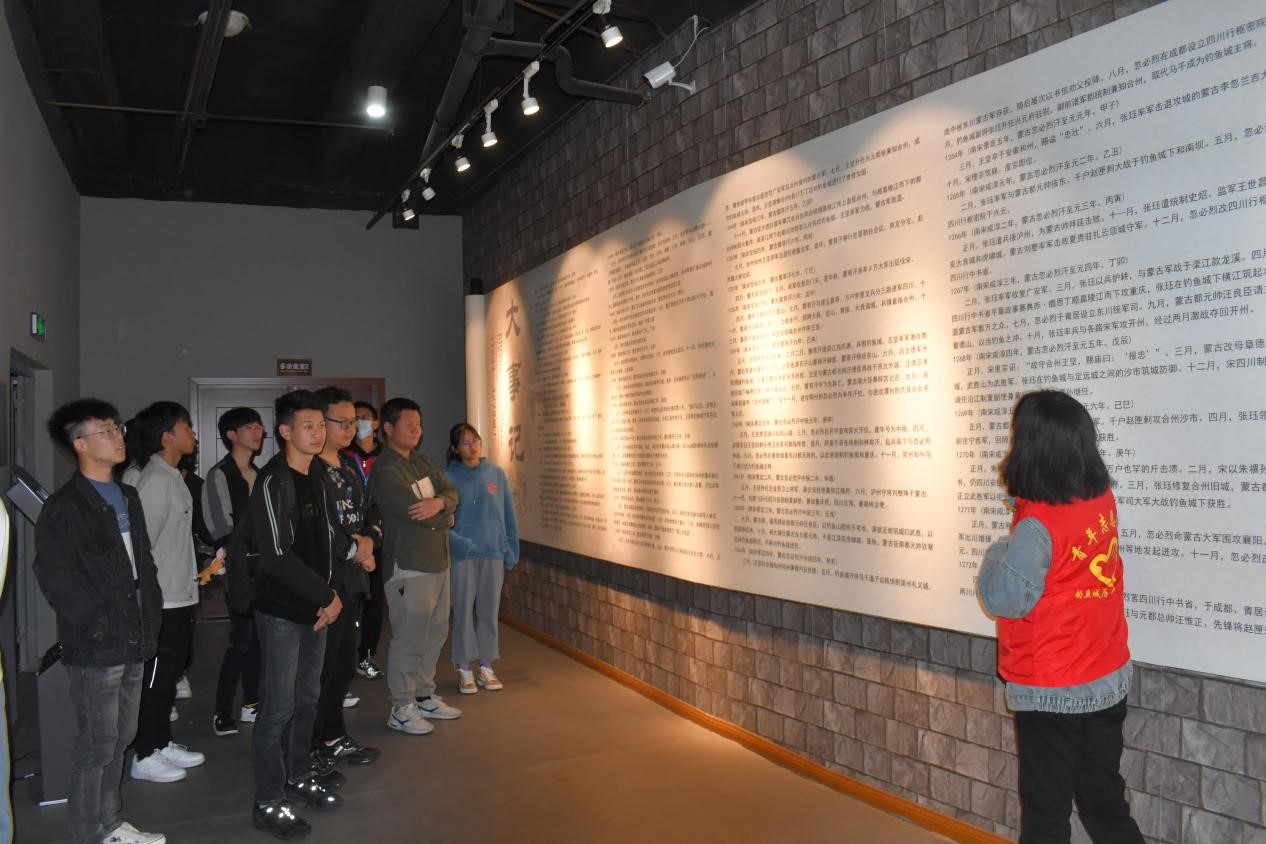 交流互结束后。在钓鱼城研究会部长谢婷婷的邀请下,青年志愿者协会的志愿者们在钓鱼城研究会的讲解员的带领下参观钓鱼城历史文化博物馆。在博物馆的时光中,青年志愿者协会的志愿者们领略到钓鱼城历史文化的风采,同时体会到钓鱼城之战中宋朝军民共同协作、拼死抵抗蒙古军进攻的爱国主义精神。在欣赏的过程中,许多志愿者更是被钓鱼城研究会成员强大的解说能力所折服;看到钓鱼城研究会细致的分工和一个个井然有序的活动安排,都令志愿者们非常吃惊。