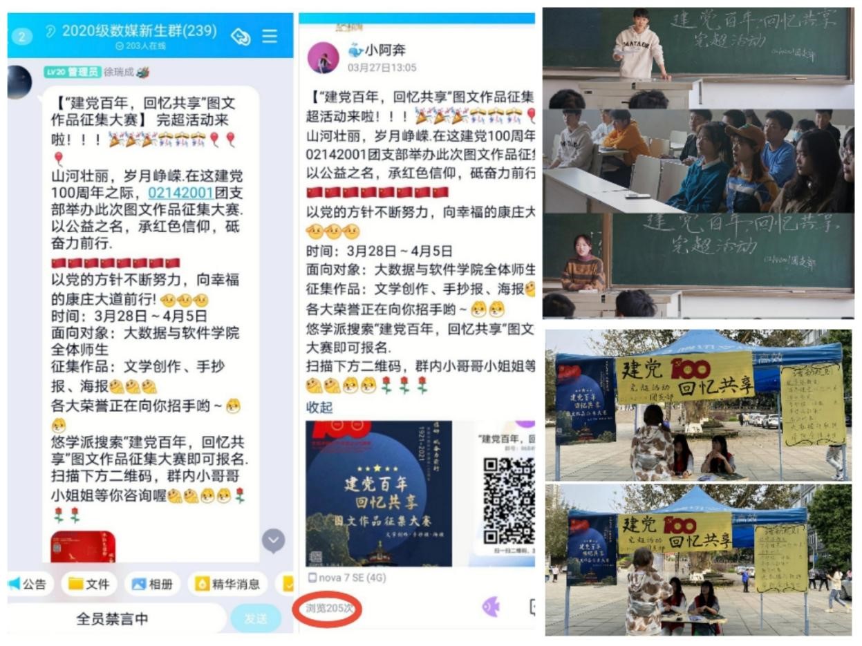 回眸党史,100年的奋斗,100年的求索,100年的沧桑,100年的巨变,鲜红的党旗始终飘扬在我们奋斗的地方,为加快班团一体化的进程,激发基层团组织活力,2021年3月28日,大数据与软件学院02142001团支部举办了以“建党百年,回忆共享”为主题的线上公益图文作品征集大赛的活动