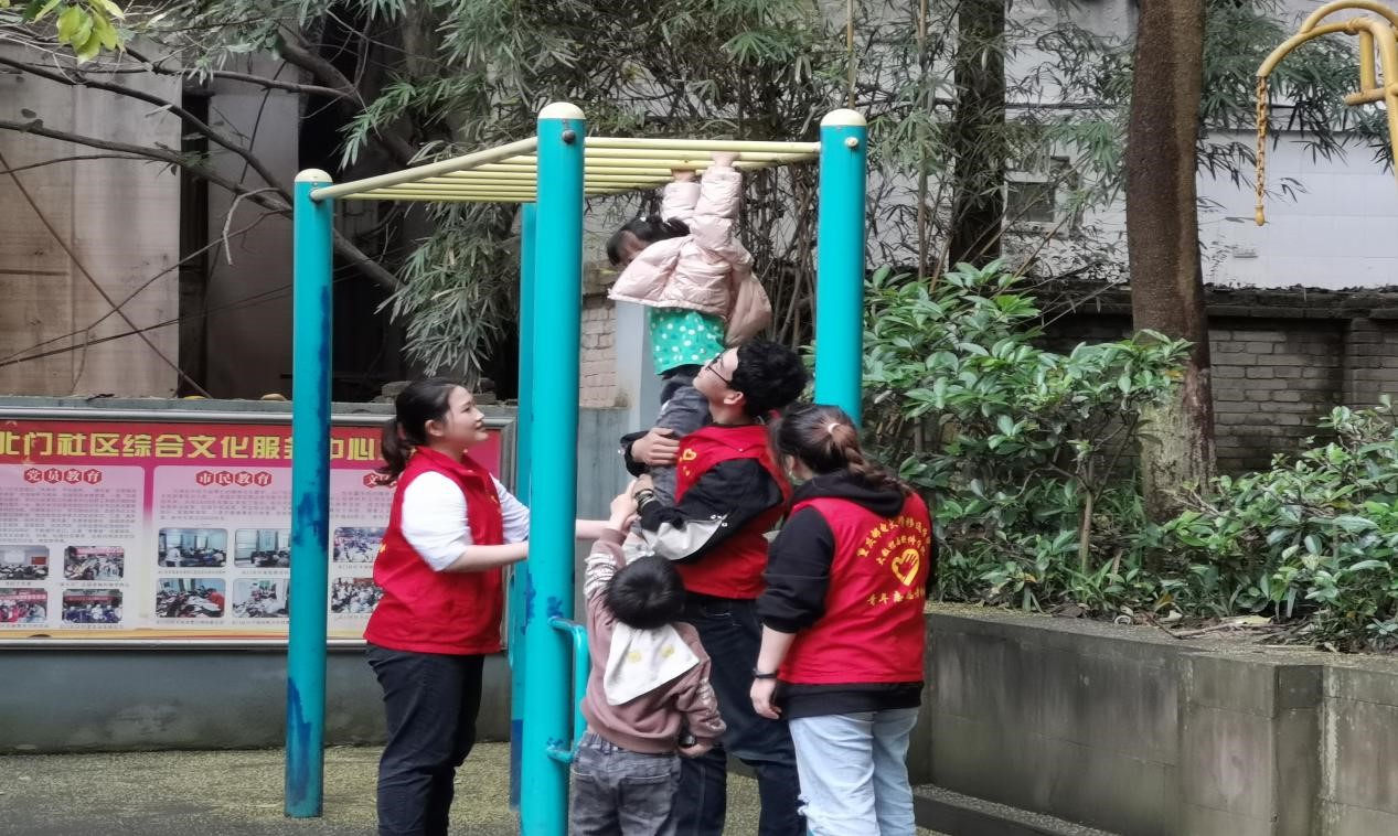 生命因运动更精彩。4月18日下午,重庆移通学院大数据与软件学院的志愿者们早早地集合,从学校出发来到北门社区参加四点半课堂活动。对社区儿童娱乐生活缺乏的现状,志愿者们为孩子们带来了羽毛球,乒乓球等,让小朋友们走出教室,去感受春天的美丽和运动的魅力。