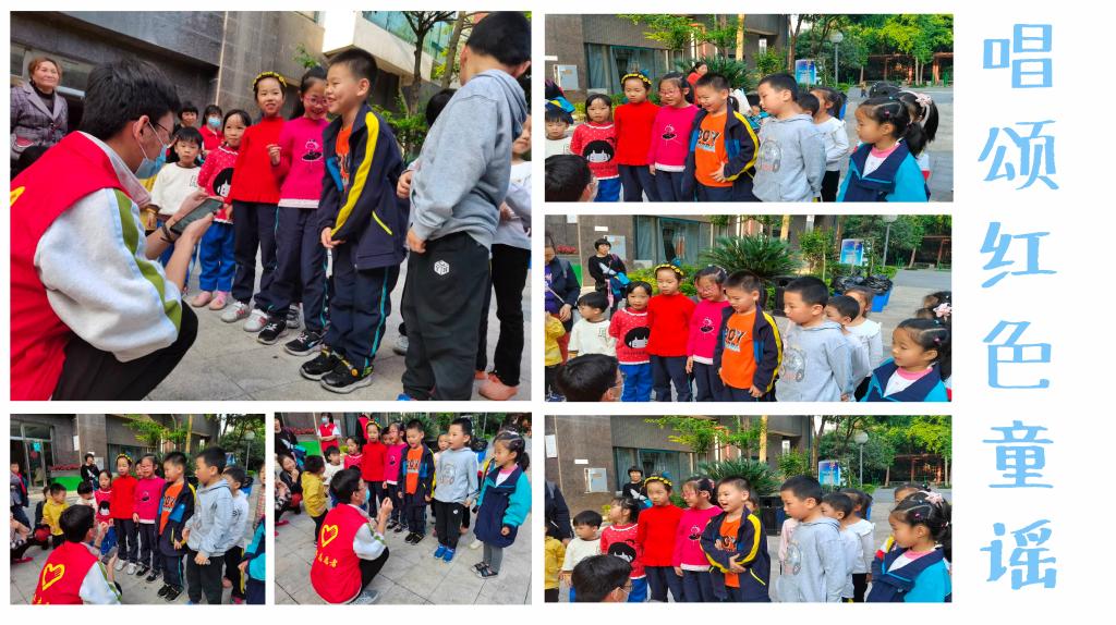“我们是共产主义接班人,继承革命先辈的光荣传统……”志愿者们带领小朋友们围坐在一起,一起将这首《中国少先队员队歌》唱响在社区中。红色童谣蕴含着丰富的爱国红色基因,将爱国情作为种子播撒进少年的心中,使其慢慢成长,爱国之心也愈发滚烫。