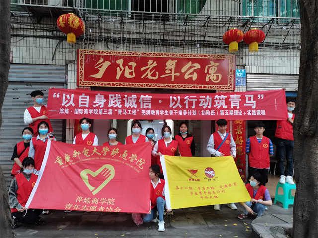 2021年4月23日下午3点50分,在重庆移通学院门口聚集着一群穿着红马甲的年轻人,彼此之间热情的讨论着关于志愿服务的事情。他们分别来自淬炼商学院“温情时刻,爱伴你我”关爱孤寡老人志愿服务专项支队和“青马工程”完满教育学生骨干培训计划中阶班九班,因志愿活动聚集在一起。