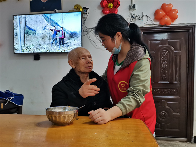 不一会儿,到了饭点。志愿者们有的帮着爷爷奶奶们端饭菜;有的给行动不便的老人喂饭,细心的检查饭菜是不是过烫;还有的志愿者陪着老人看电视,听老人讲革命故事。就这样不知不觉间活动接近了尾声,最终,这次的活动在志愿们的不舍和老人送别的目光中结束。两个小时的志愿活动让大家感受到了老人们的热情和本次活动的意义。相信下一次的相见又是很快的,那些感动的,美好的瞬间都记在大家的心里。在返校的途中,大家说着对本次活动的感想,都为自己参加本次活动感到由衷的快乐并表示下次还会积极参加类似活动。