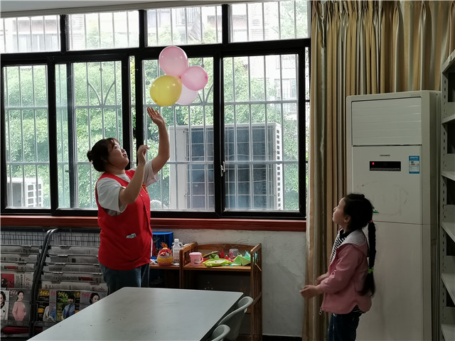 击鼓传花游戏登场,将大家都聚集在一起,大家都非常的配合,玩得十分开心。另外,志愿者们还和小朋友们一起玩气球,有的把气球向空中抛出去接,有的拿着气球和小朋友一起玩,有的拿着气球两个对面拍,顿时,天空中出现五颜六色得气球漂亮极了,大家玩得不亦乐乎。