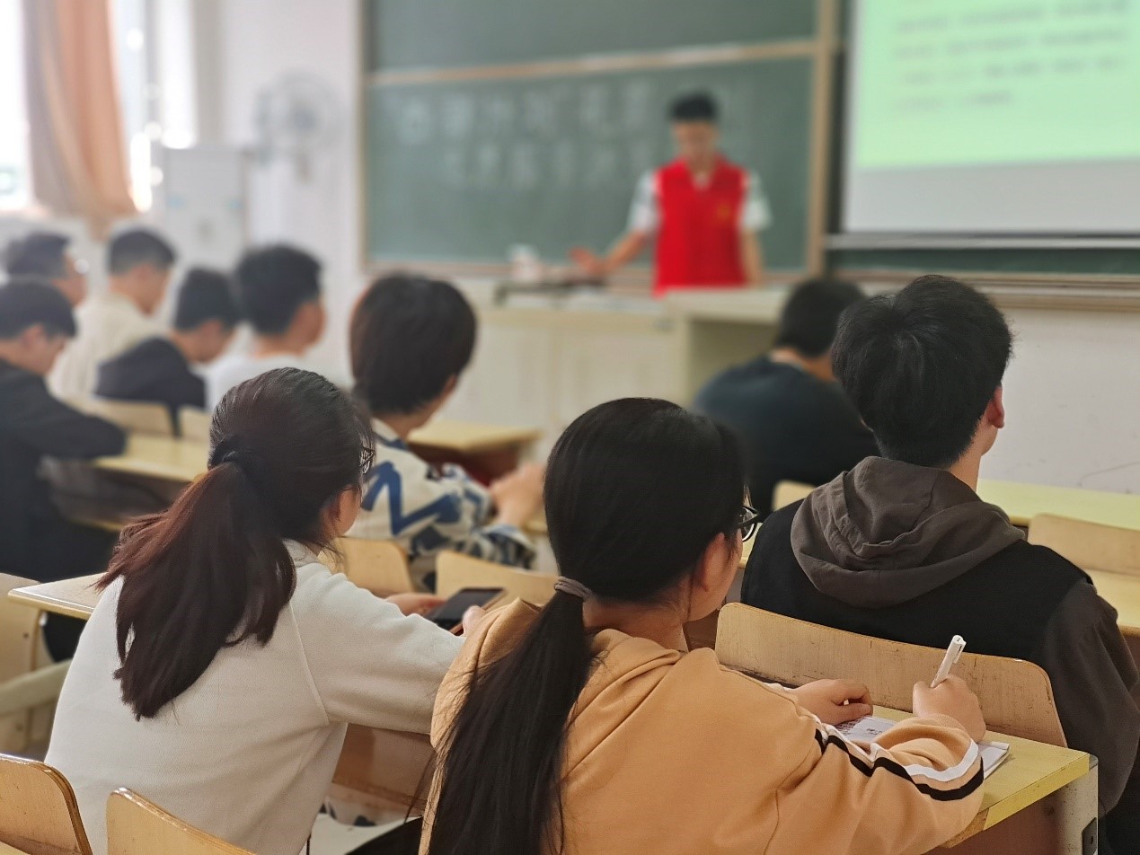 青年志愿者协会主席张琪对于西部计划的讲解做了一定的补充,提到了西部计划对于同学们今后的发展道路的重要性,让同学们更加重视西部计划,了解西部支教、支医、支农。例如西部支教是当代大学生调研活动很重要的一项内容,这不仅提高了西部地区的文化教育水平。在场的同学们认真地聆听并做记录。