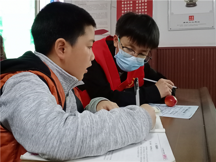 “哥哥…姐姐…我来啦!!!”伴随着雀跃的欢呼声忽然涌现一群小可爱,他们进入活动室便主动“领取”志愿者找好位置坐好,取出课本开始完成自己的作业。志愿者的目光紧随着小朋友解答题目的笔尖,发现错误的地方,以温和的语气说“这里再看看,有一点问题哦”,在观点不同的时候,志愿者耐心听小朋友陈述自己的想法,然后一点点指出问题,直至小朋友露出恍然大悟的神色。志愿者的低声讲解,小朋友的笔尖滑过纸张,构成了活动室里美妙的旋律。