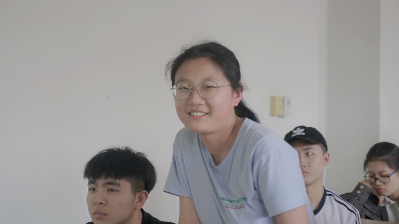 王皖青同学在邹兴容队长的邀请下讲述了自己学习到的垃圾分类的知识,她表示从志愿活动以及学校中学到了很多相关知识并且将这些知识教授给身边的人,并且表示在未来的生活中一定会更加爱护环境。