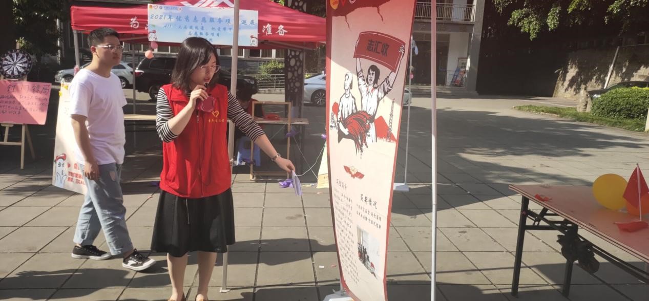 大数据与软件学院的七彩四点半课堂,三江红丝带防艾天使计划和三江绿丝带禁毒宣教项目成功进入2021年优秀志愿服务项目活动。 2021年4月28日—2021年4月29日 ,重庆移通学院“青春建功十四五·基层志愿在闪光”2021年优秀志愿服务项目巡展活动在黄桷树广场如期举行。大数据与软件学院花果培训骨干班讲解老师兰宇老师带领花果培训骨干班班成员来感受移通志愿服务的魅力。