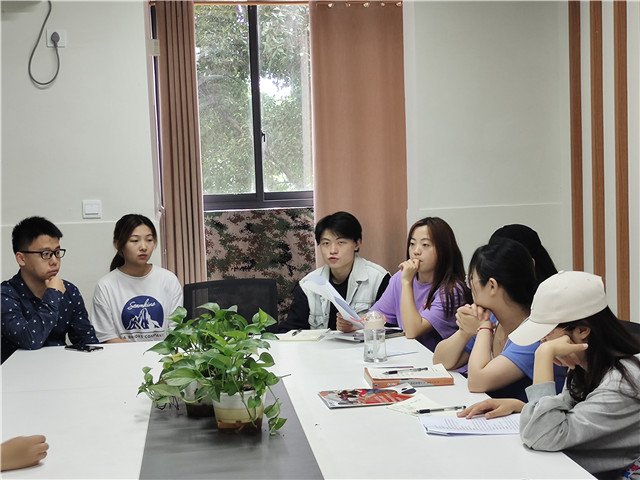 双方成员相继落座,交流会正式开始。军事讲究知己知彼,相互了解是合作的基础,廊桥书院负责人与淬炼商学院青年志愿者协会成员分别进行了自我介绍。随后廊桥书院负责人向淬炼青协成员介绍了廊桥书院军事文化月具体活动,围绕“通、识、变、险”四个方面将军事月完全展现。淬炼青协志行部部长与老兵不老支队长也具体描述了老兵基地现状,讲解了基地活动展开形式。双方针对交流主题,分享了各自的活动经验,特色活动的介绍让双方了解更加深入。