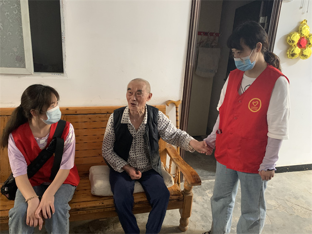 一进门,奶奶爷爷们起身热情地欢迎志愿者们,他们脸上挂着幸福的笑容,志愿者们也热情地回应着爷爷奶奶们的问候。有些行动不便的老人,志愿者们就走进他们的房间,去跟老人聊天,了解老人。每个老人的阅历都十分丰富,甚至能够写一本书,每每离开一个老人房间,老人都会紧紧拉着志愿者的手,不愿松开。他们还对志愿者说:“你们跟我的孙儿孙女们一样大,看到你们我就想到了他们,我真高兴你们能够来看我!”其实老人们的内心是十分孤独的,他们渴望关爱、渴望陪伴,志愿者的到来真的给老人带来了很大的关爱。