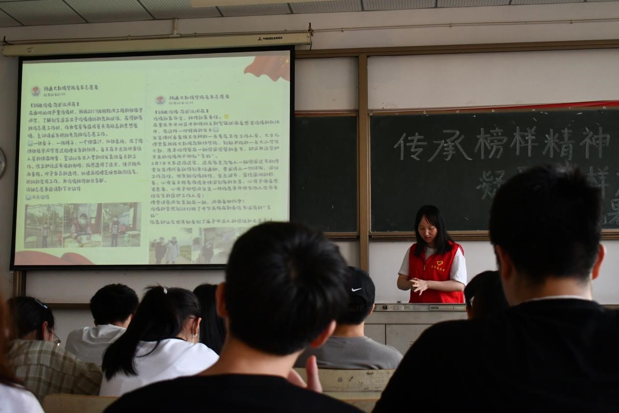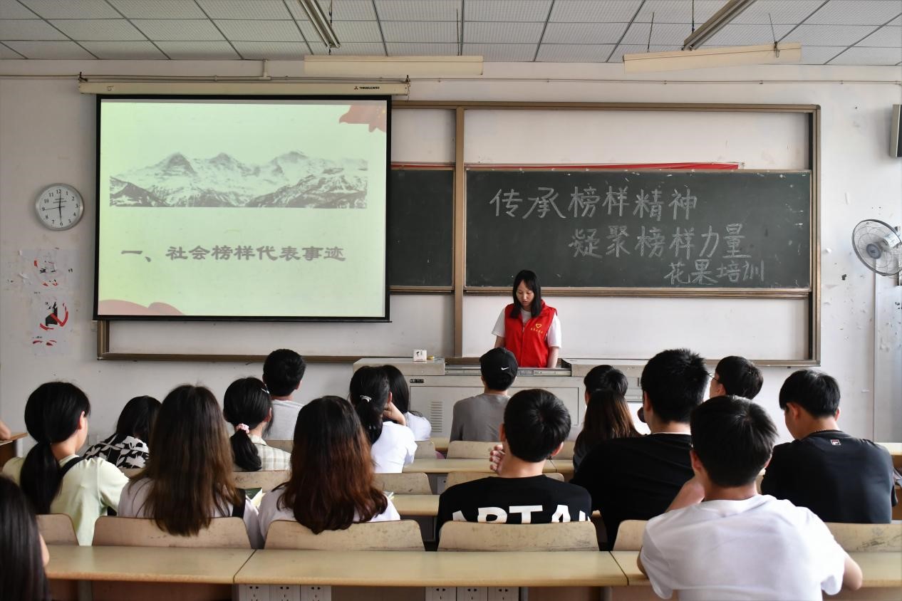 为积极促进学生素养,推动学院学风建设,弘扬新时代模范典型的精神品质,激励全院广大学子学习先进,争做先进,大数据与软件学院青年志愿者协会在S3502举办了传承榜样精神,凝聚榜样力量花果培训活动,对社会榜样、学院榜样进行了事迹报告。