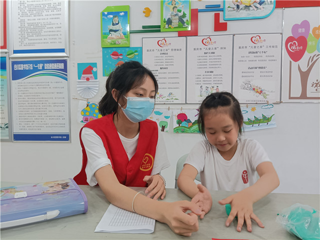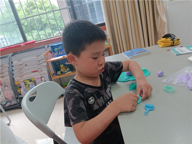 稚嫩之手,创造不一样的精彩世界。回归到娱乐场景,全是欢声笑语,小朋友们大展身手,用橡皮泥制作出各种奇异的小东西,这些无不展现了小朋友们奇思妙想的世界,充满了创意,然而志愿者们和小朋友们一起嬉戏的模样像极了家中的温馨模样,像极了兄弟姐妹嬉戏的状态,你中有我,我中有你。