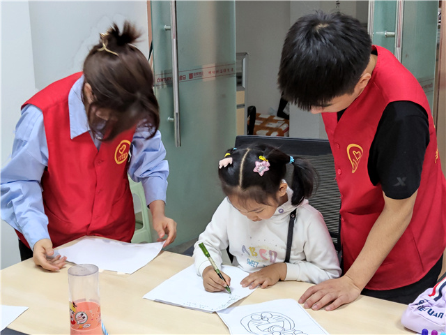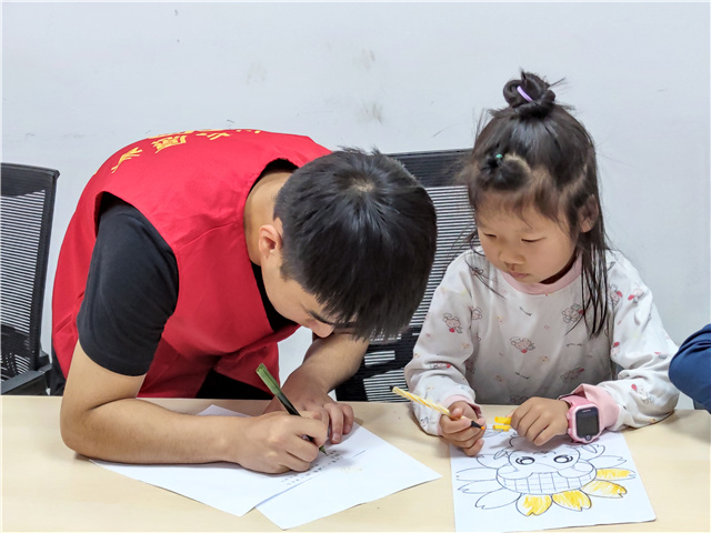 在新时代形势的影响下,青少年是祖国的未来,民族的希望,国家注重青少年德智体美劳全面发展,在小朋友绘画的过程中,志愿者以热情饱满的态度引导小朋友们作画,在潜移默化中带动小朋友们独立思考和独立作画能力,同时享受参与活动的快乐。通过观察,志愿者发现小朋友们对事物都有自己特别的看法,他们总能产生令人惊叹不已的创新想法。