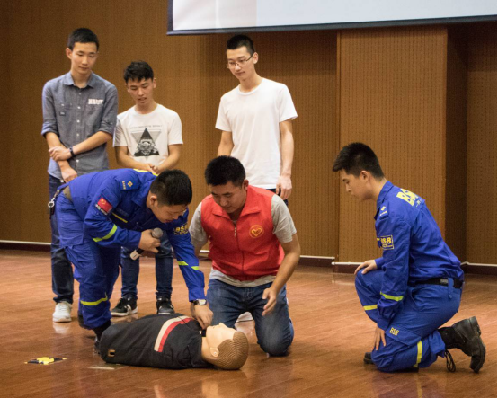 我校蓝天应急救援志愿服务专项支队围绕“应急救护”向西部计划志愿者们讲解了急救的原则、目的、程序、自我保护等方面的理论知识;演示了创伤处理、心肺复苏、人工呼吸、昏迷人员救护等常见急症及意外伤害的救护原理及技术手段;强调进入急救现场时应该注意的事项和原则,只有正确的把握救护时间和救护方法,才能赢得更多宝贵的生命。