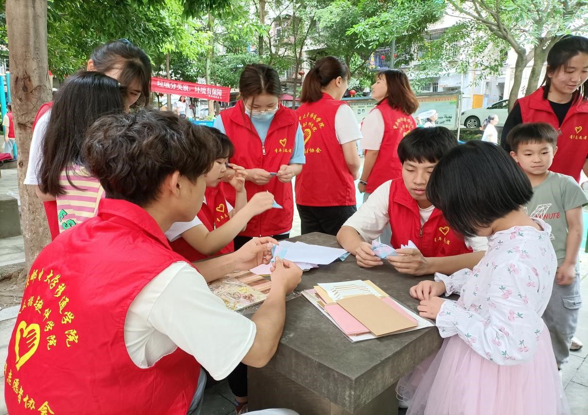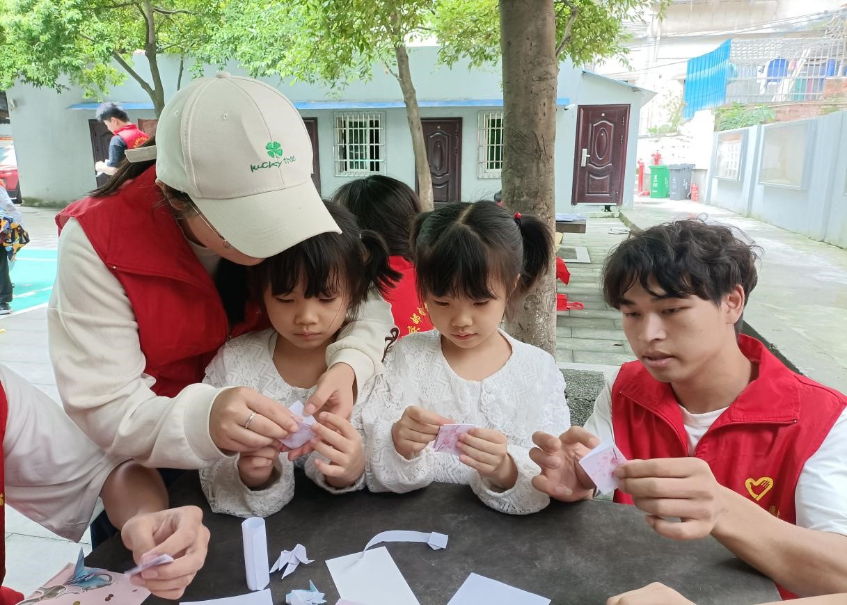 志愿者们耐心地教孩子们学习折纸,孩子们也学得非常认真,许多的孩子都围坐成圈在学习折纸,并且这些折纸可以贴在信封上,通过一些装饰让信封变得更加美丽。折纸还可以锻炼孩子手指的灵活性,开发他们的动手能力和创新能力。在一上一下的跷跷板说倾倒这孩子们天真的话语,年龄大一点的孩子会和志愿者们倾诉成长的烦恼,有些年龄小一点的孩子会和志愿者打闹着。孩子们也带领志愿者们一同进入到童年时光,他们一起玩卡牌,也让志愿者们感受到童年的回忆。