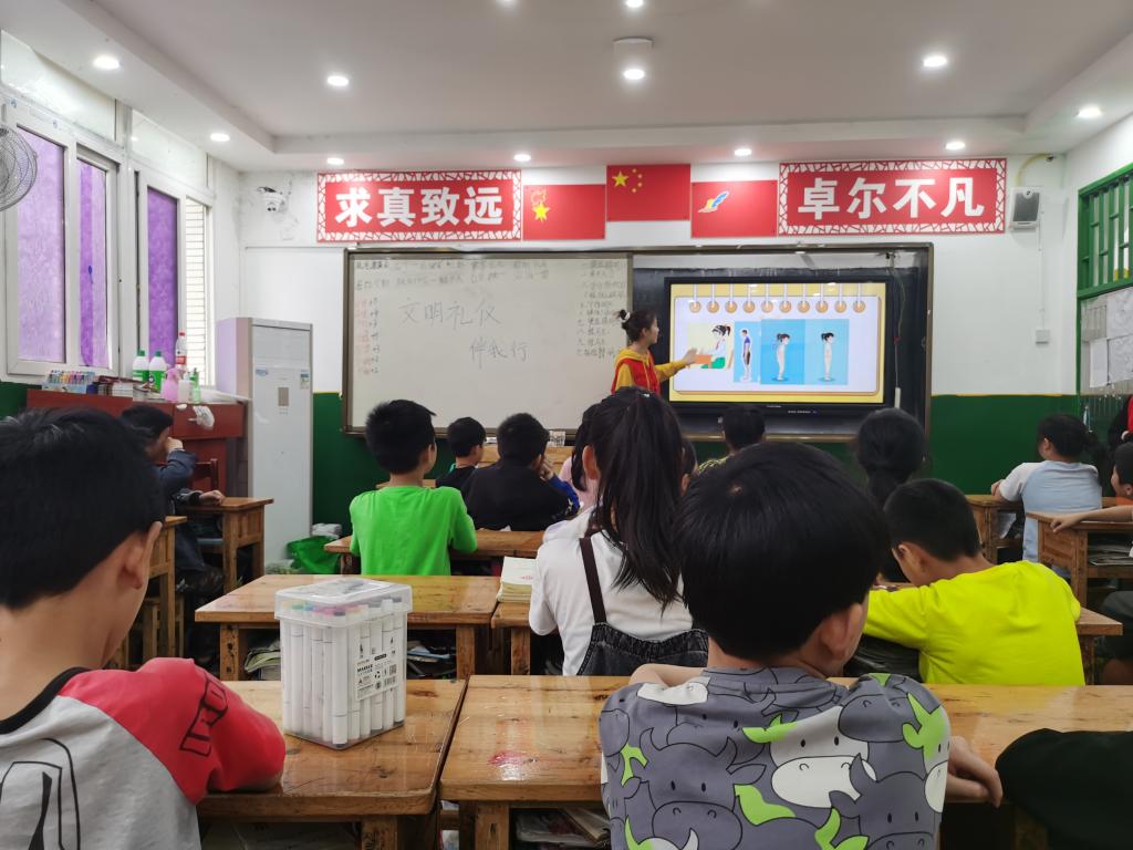 为更好的传播商院专业教育和商科教育,塑造多方面发展的同学促使他们将专业知识与理论实践相结合,在社会实践以及今后的工作中利用自己的专业素养取得成绩,并且提高同学关爱儿童的意识,2021年05月23日下午四点重庆移通学院淬炼商学院青年志愿者协会“七彩筑梦,完满绽放”志愿服务专项支队在合川卓尔实验学校召开了“社交礼仪知识宣传活动”。本次活动有幸邀请到校园社团活动社交礼仪协会成员参加,给小朋友们讲解社交礼仪知识。