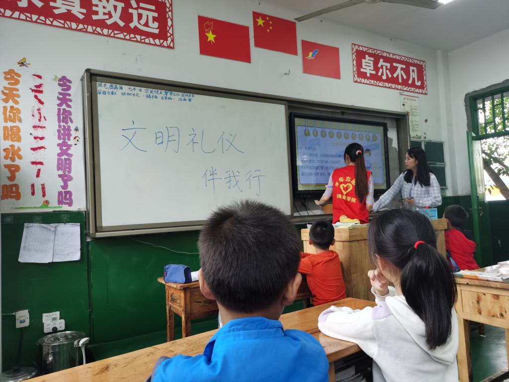 本次活动通过幻灯片教学等形式为合川区卓尔实验小学的小朋友们讲解社交礼仪知识。为了提高孩子们的注重社交礼仪方面的意识,本次活动大致可分为站姿,坐姿,与同学,与老师,和父母之间的礼仪等板块,还对正确佩戴红领巾的方式进行了讲解。在整个活动过程中,小朋友们都显得格外的高兴,脸上时刻洋溢着欢快的笑容回答问题也格外的积极,同样志愿者们也格外的激动,路途的遥远也挡不住志愿者们激动的内心。