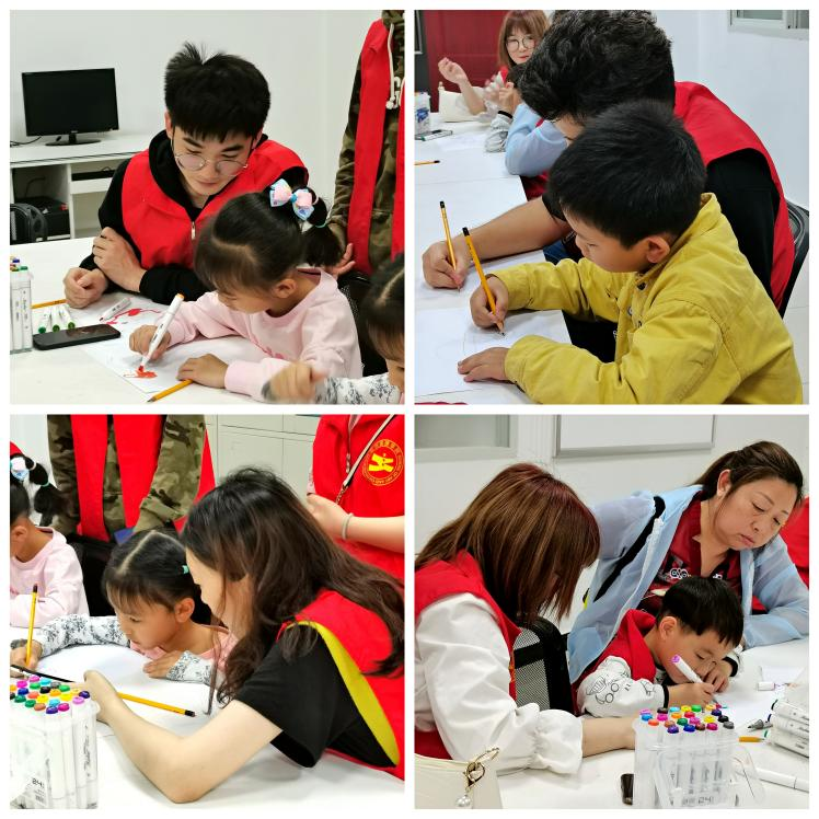 每个孩子的心中都有自己的梦想,有自己喜欢的事物,在志愿者的带领下,小朋友们用笔绘画出自己不曾用语言所表达出的事物。一开始的相处并不容易,有两个小朋友一直在活动室里到处跑,那些看似简单的活动,对他们来说却很难很难。志愿者们手把手地教他们画画,他们却很难专注下来做事情,始终沉浸在自己的世界里,害怕和志愿者们沟通。