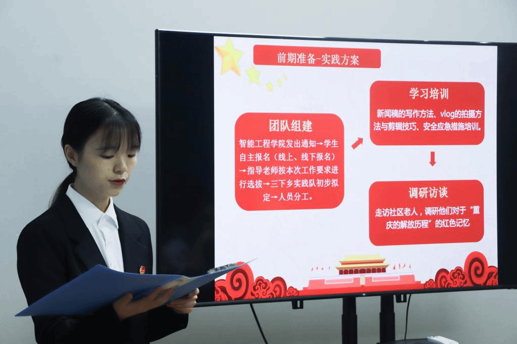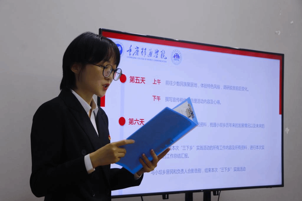参与本次答辩的28个团队各有特色,都从不同切入点选题立项,其中涵盖了教育教学、乡村振兴、青少年心理健康、红色党史宣讲等多个方面。本次答辩中涌现出非常有特色团队,如:“红色基因”青年党史宣传实践团,在建党100周年的大背景下,实践团成员们将通过下乡宣讲、原创党史广播剧、挖掘当地党员典型故事等形式,宣扬红色文明、传扬红色精神,让更多的人知党史、知党情,让红色基因、革命薪火代代传承;磨盘石文化艺术服务团以“承非遗文化,促民族团结”为主题,深入苗寨,了解并学习苗寨特有的非遗文化,融合苗家风俗民情开展主题的表演式读书分享会及兴趣课堂,为当地儿童及寨民提供更多了解外界的机会;盛夏扬帆教育关爱团面向重庆市贫困区县招募4至9年级成绩优异、有上进心、经济来源单一的乡村营员,以乡村振兴、建党百周年为契机,结合学校所处地合川的丰厚历史文化底蕴以及移通校园浓厚文化氛围,通过传承红色经典主题夏令营,助力营员们爱国意识培养。除此之外,答辩人与评委们的默契互动,一次又一次掌声,更进一步将活动推上高潮。