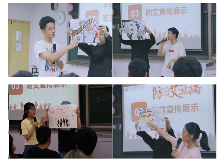 在年级会上,每个班级的同学们都展开头脑风暴,把自己所了解的艾滋病知识,将自己产生的联想绘画成手抄报形式,并在本次年级会中上台分享。每人的讲解各有特色,有娓娓道来地深情倾诉、有让人爆笑的幽默讲解,参赛者用他们自己的方式把防艾知识讲给同学听,提高学生听众的接受度与参与度,在场的同学听得津津有味,现场不时爆发出阵阵掌声。