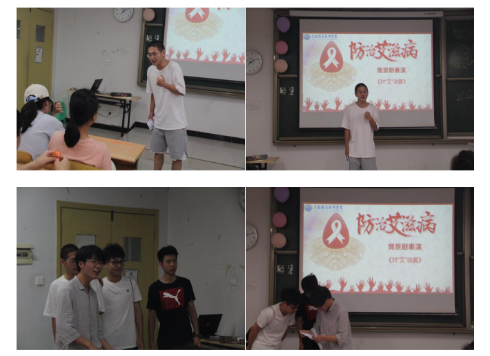 艾滋病是人们为之色变的疾病,艾滋病离我们并不遥远,由于艾滋病具有较长的潜伏期,很多人已经感染了,却浑然不知。在情景剧《对“艾”说爱》中,一位学生去夜店后,被误诊为艾滋病,班上同学们知道之后,纷纷远离他,歧视他。通过表演者精彩的演技让同学们更清楚认识到什么是艾滋病,从而让同学们摆脱对艾滋病患者的歧视和误解。期间大家都热情高涨,台下的同学们都懂得生命的每一瞬都应该被好好的珍惜,在将来希望同学们可以用会心的笑去帮助艾滋病病人驱除内心的灰色,去帮助他们鼓起勇气,为艾滋病人们在寒冬中尽一份力量 ,更希望同学们洁身自好,远离艾滋病。