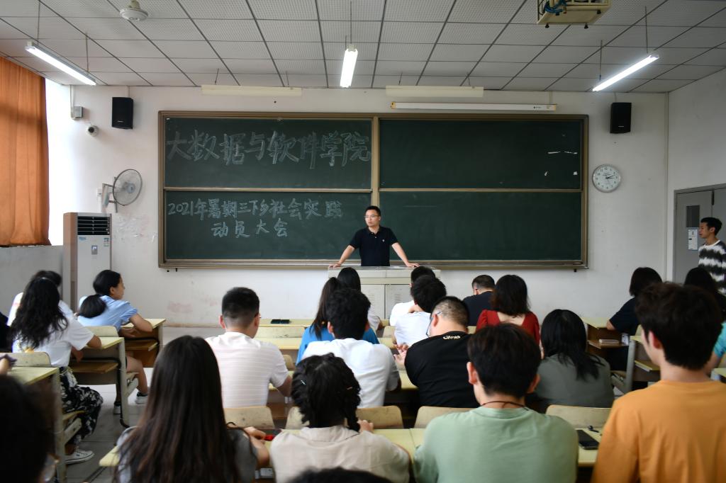 永远跟党走,奋进新时代。2021年6月30日下午15:00,由大数据与软件学院团总支、学生会、青年志愿者协会所组成的甲壳虫教育关爱服务团、“天使关艾·e心禁毒”禁毒防艾宣传团、“绿水青山”创建文明城市e行团在s3401开展2021年暑假三下乡社会实践项目动员大会。