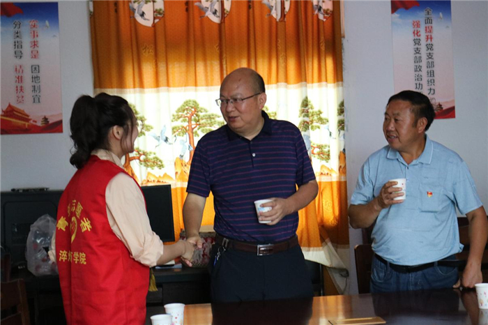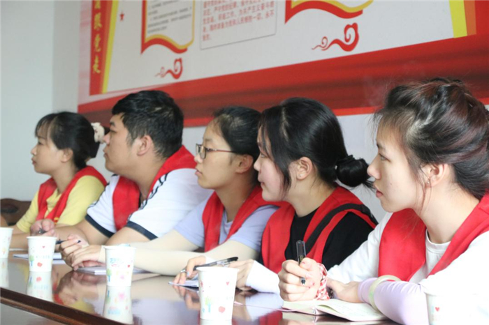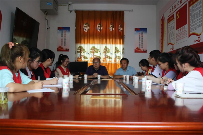 中午稍作整顿后,金洞乡党委书记冯辉、金洞乡农业发展中心主任李秋波和金洞乡经济发展办公室主任谢恒波来到了金洞村村委会,对志愿者们进行关心和慰问。实践团指导老师曾玉娇向金洞乡党委表达了自己对家乡建设的愿望和决心,以及同学们对助力乡村振兴的热情与期待。冯书记对同学们的到来表示欢迎和感谢,并对后期的调研活动提出建议和要求。他提到,今年是特殊的一年,是“乡村振兴”的开局之年,希望志愿者队伍能够做到实地调研,发现问题、分析问题、解决问题。吴书记还补充到,实践团下乡助力乡村建设,是对巩固脱贫攻坚成果和推进乡村振兴战略有效衔接的重要方式。最后,冯书记还表示会在接下来的调研活动中为志愿者团队提供多方面的支持与帮助。