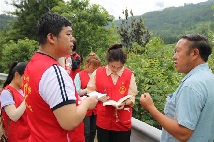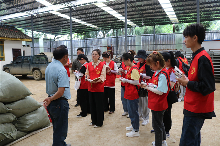 声声鸡鸣唤醒了7月3日的清晨,整装完毕的志愿者们对今天的行程充满信心,正如破开厚重云雾的阳光,坚信着他们的行动会给金洞村注入不一样的能量。志愿者们与吴书记等驻村干部在村委会汇合,并对今天的行程进行了初步安排。